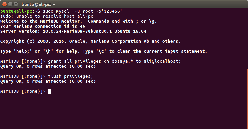 Jika sudah masuk, untuk keluar dari Maridb/MySQL ketik quit.